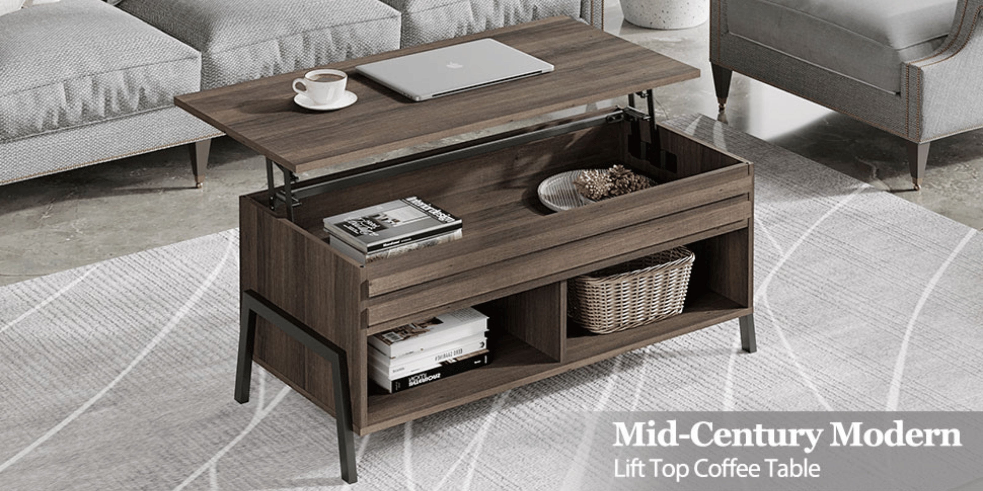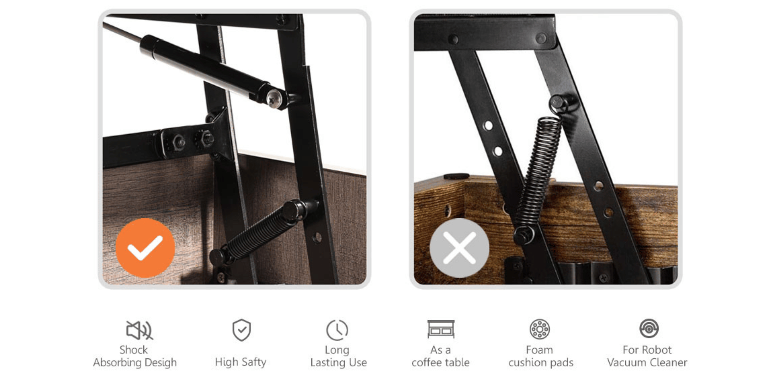 【ADJUSTABLE LIFT TOP DESIGN】The modern coffee table's innovative design with hidden compartment and lift tabletop can be adjusted vertically from 18.5"to 23.8" to meet your different demands of desired height and create a versatile working/eating surface. High quality mechanism enables the tabletop to be lifted up or lowered down effortlessly and noiselessly. And the stability will also be guaranteed while adjusting.