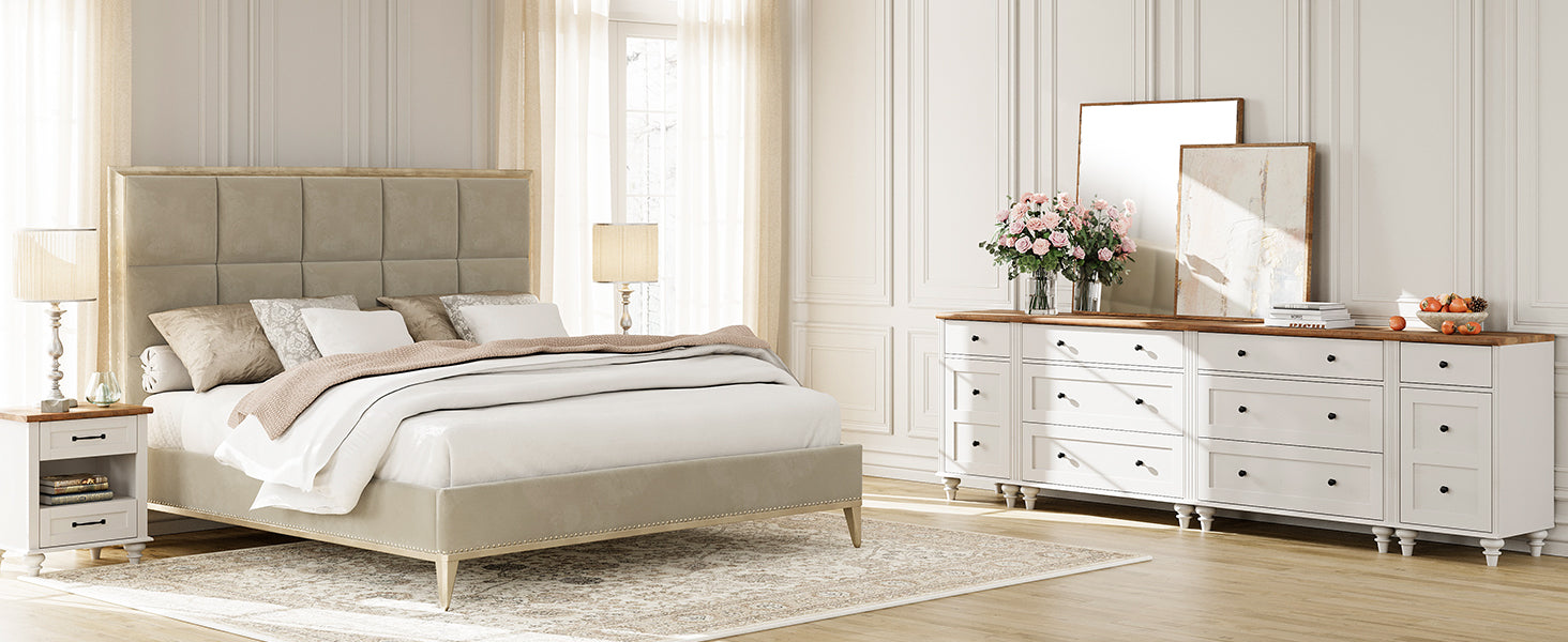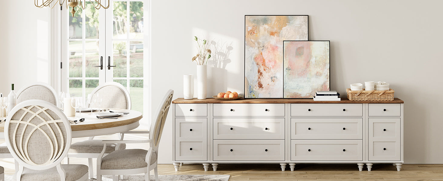 【RELIABILITY & HUMANIZED DESIGN】The white/oak dresser with solid wood round gourd furniture legs add beauty and ensure the stability of the storage cabinet.And an additional anti-tipping kit is also included for added safety. Total Weight Capacity: 88 lbs.The distance between the bottom plate and the floor is large enough so that the robot vacuum cleaner can pass freely.
