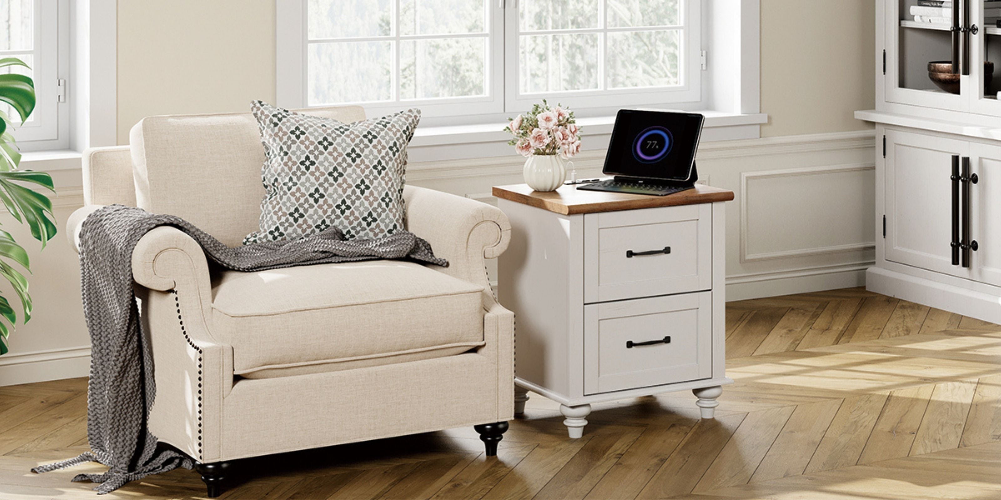 Never worry about not having enough power outlets again, WAMPAT nightstands with power outlets and USB ports provide unparalleled convenience for you. 2 power outlets and 2 USB ports are enough to charge your phone, lamps, and smart speaker. 6.5 ft long power supply cord allows you to place your end table in most places.