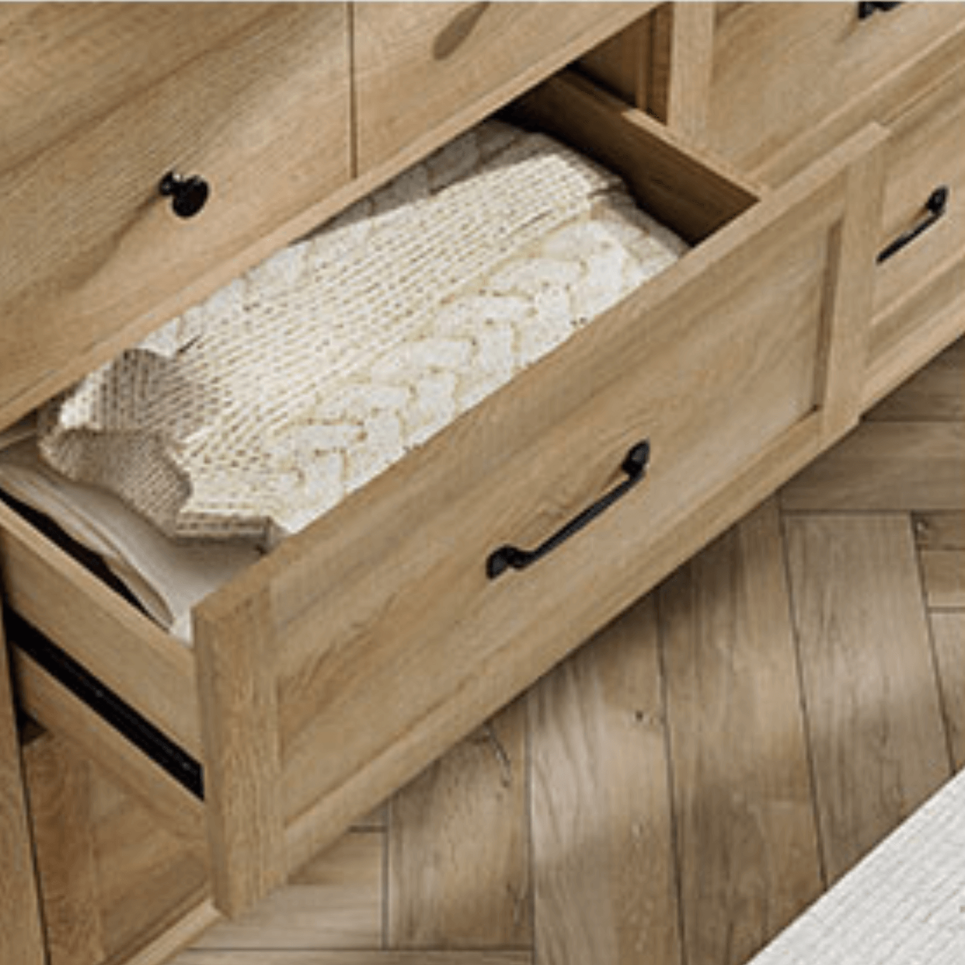 šćHUMANIZED DETAIL DESIGNćEquipped with smooth metal drawer slides and handles, the drawers of the closet dresser are effortless to open and close. And the mid century modern dresser is secured by anti-dropping device to reduce tip-over accident for more safety. It is worth mentioning that the distance between the bottom plate and the floor is large enough so that the robot vacuum cleaner can pass freely.