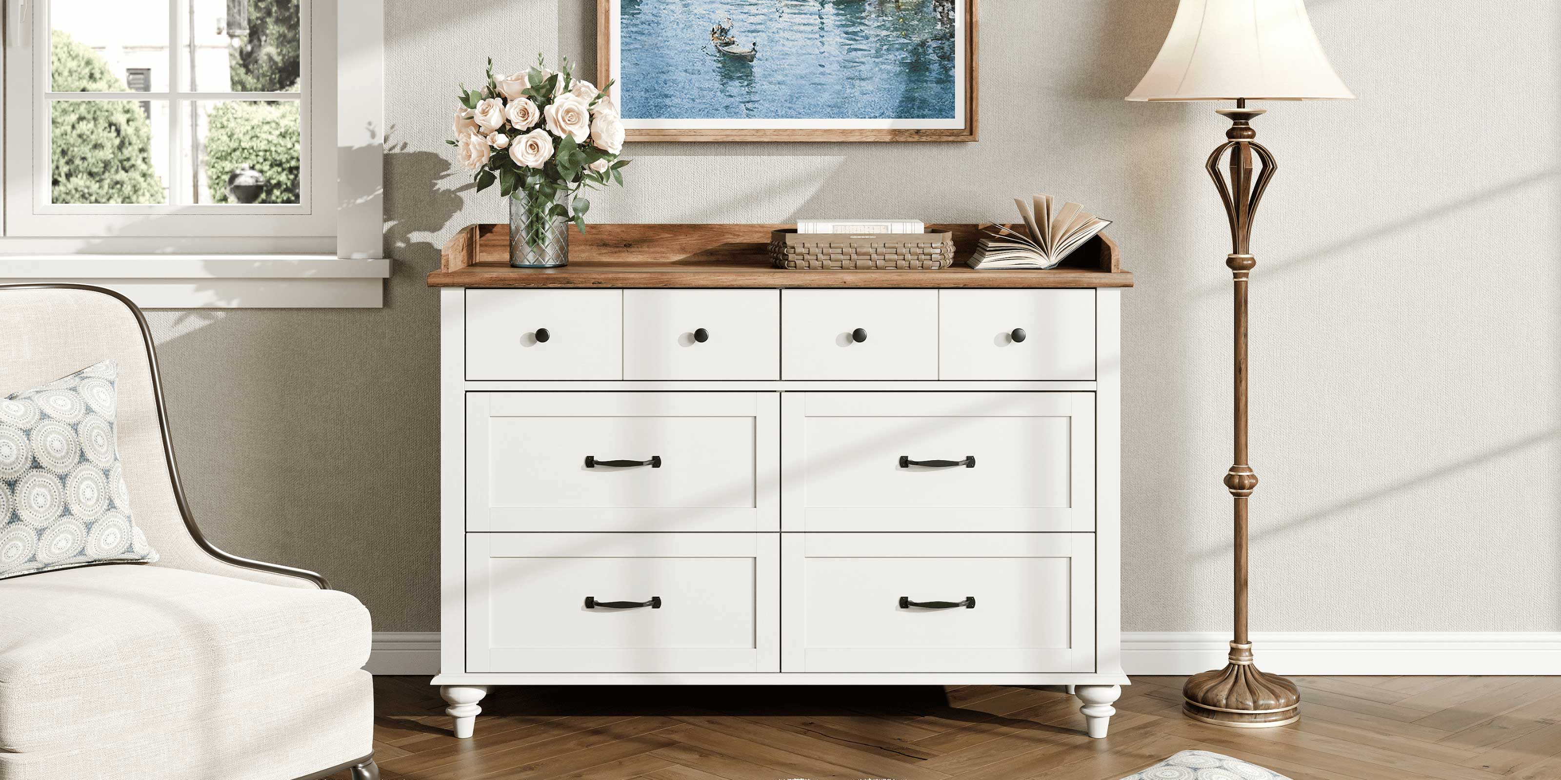 šćHUMANIZED DETAIL DESIGNćEquipped with smooth metal drawer slides and handles, the drawers of the closet dresser are effortless to open and close. And the mid century modern dresser is secured by anti-dropping device to reduce tip-over accident for more safety. It is worth mentioning that the distance between the bottom plate and the floor is large enough so that the robot vacuum cleaner can pass freely.