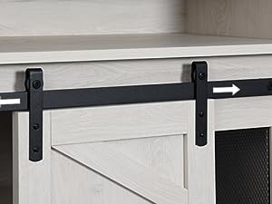 【SLIDING BARN DOORS】Our two sliding barn doors are designed with a special quality metal barn door pattern. Easy access to cabinets and shelves via metal track,,slide smoothly and quietly.